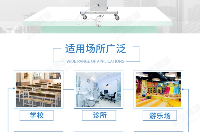 移動式紫外線消毒車高效消毒,可用于餐飲、酒店住宿、醫院、學校、商場超市、公司、家庭、公共交通等相關場所的消毒工作